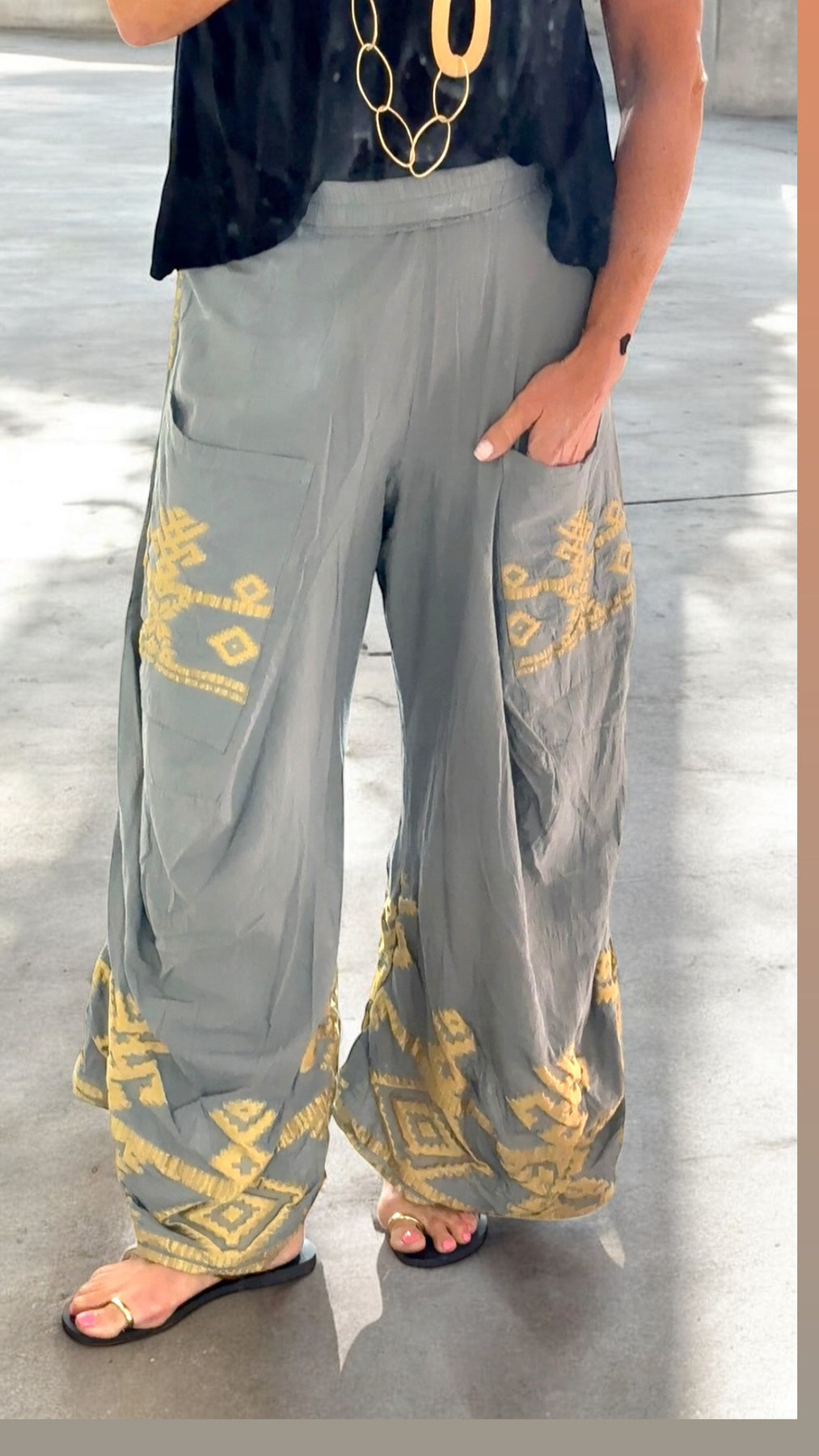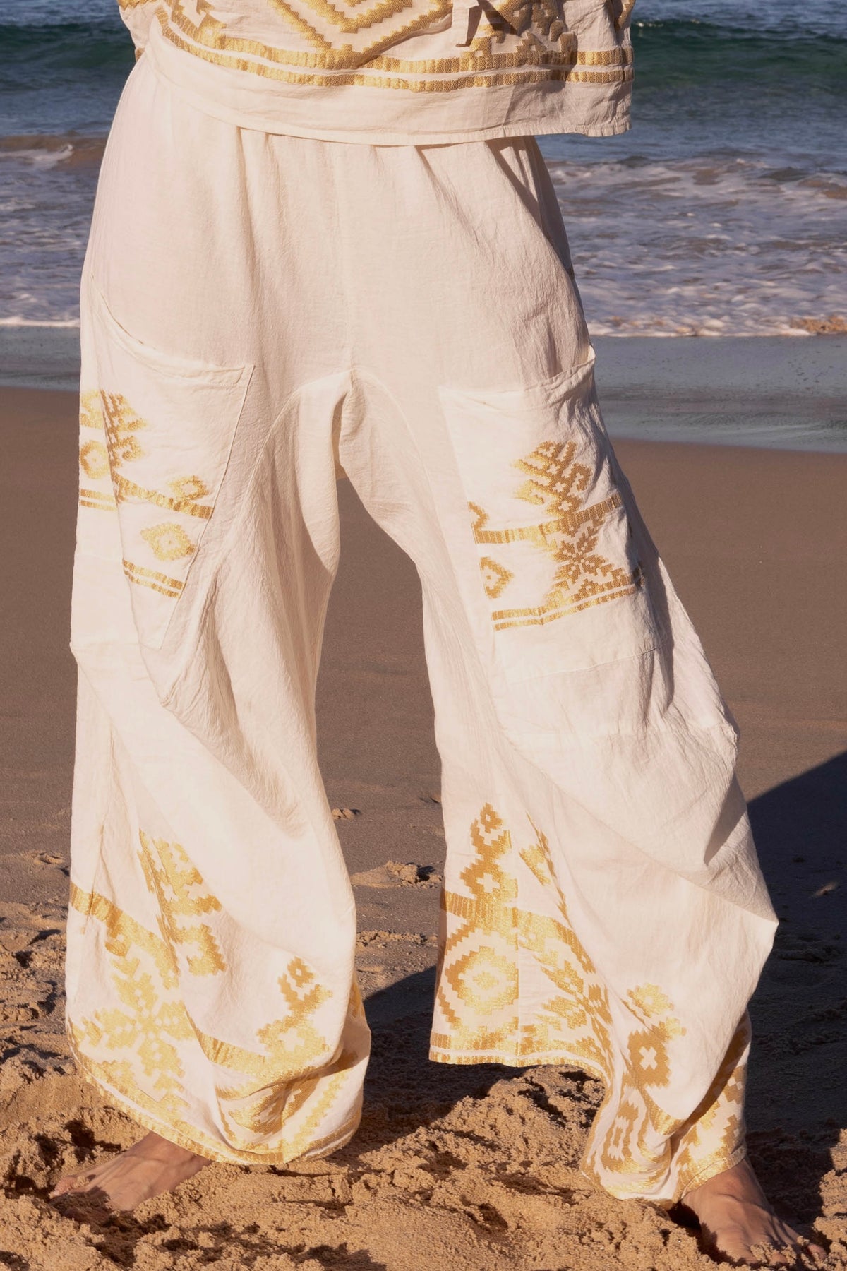 Cotton Pantaloon pants elevated to a level of exclusivity and elegance with the gold brocade detailing.