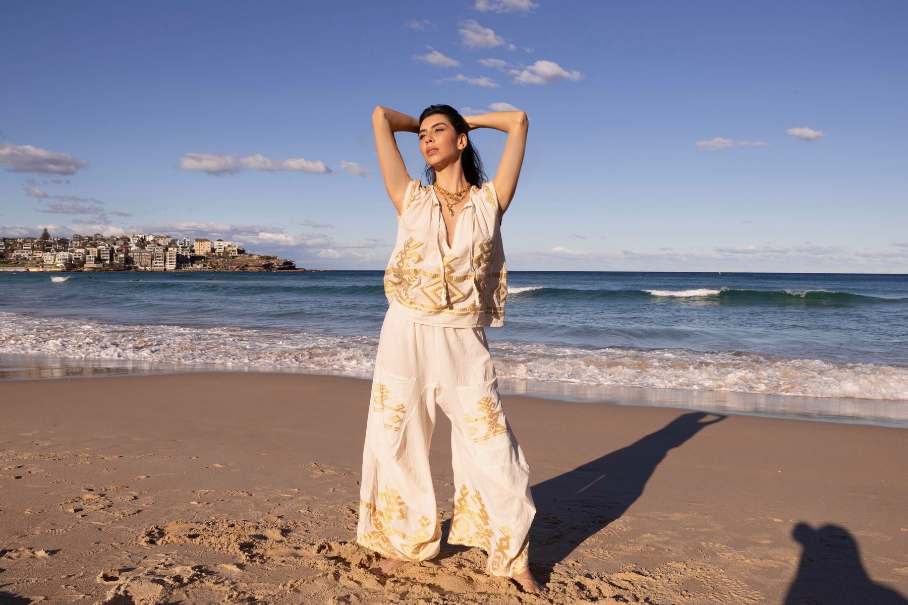 Ideal to pair with our linen gauze kaftan ( as featured), shorter linen top or a strappy singlet.