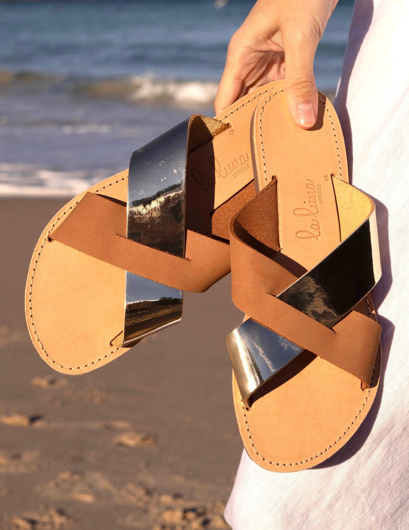 Handcrafted in Greece, these sandals balance timeless craftsmanship with a modern edge.